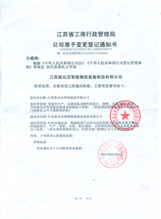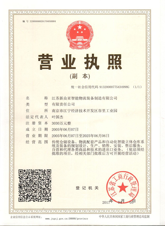 江蘇新眾亞智能物流裝備制造有限公司