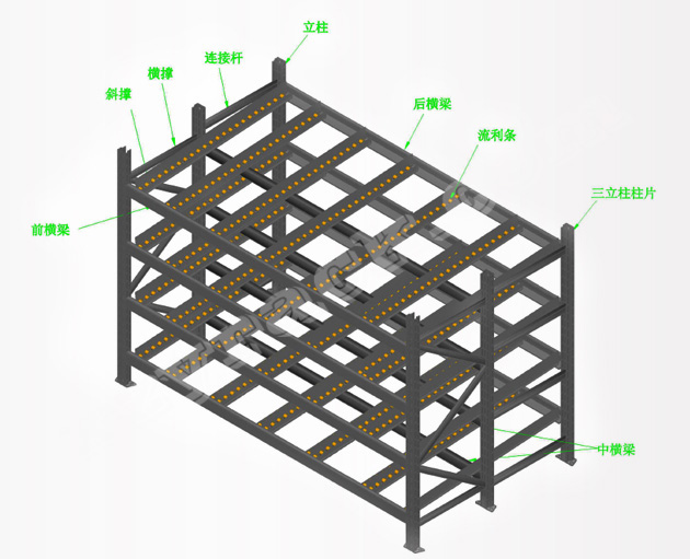 流利式貨架:采用輥輪鋁合金,鈑金等流利條,利用臺架自重實現(xiàn)先進(jìn)先出,存儲方便,適用于裝配線兩側(cè)配送中心等場所。可配電子標(biāo)簽,實現(xiàn)貨物的輕松管理。將貨物置于滾輪上,利用一邊通道存貨,另一邊通道取貨,貨物在重力作用下向下滑動,在存放散貨時可很方便地為操作人員提供生產(chǎn)物品,加快生產(chǎn)流水線的工作速度,常用滑動容器有周轉(zhuǎn)箱,零件盒及紙箱,適合大量貨物和短期存放和揀選。