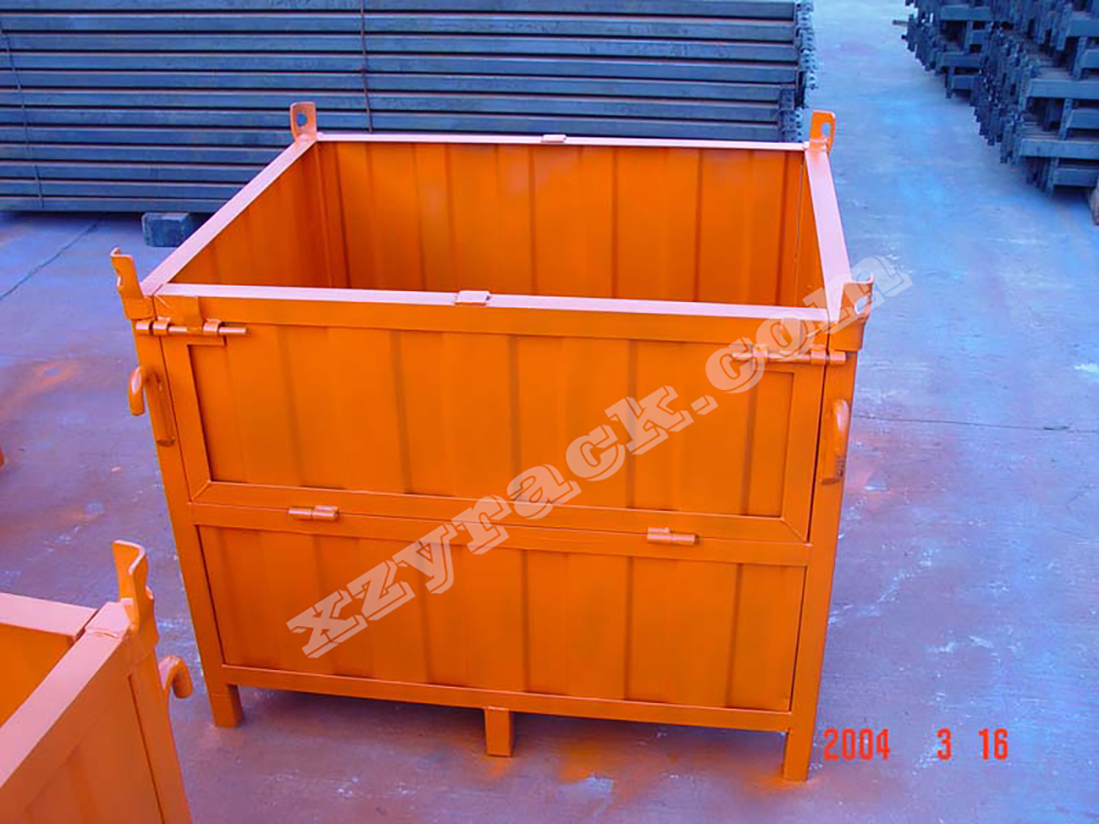料箱又稱為鋼制料箱或金屬料箱,是在金屬平板鋼制托盤基礎(chǔ)上發(fā)展起來(lái)的,用于解決鋼托盤無(wú)法盛放散件或散狀物料弊端。一般下部像鋼托盤一樣方便叉車四項(xiàng)進(jìn)叉,上部可吊裝,也可以進(jìn)行堆垛,在存儲(chǔ)貨物時(shí),可以堆垛四層,可實(shí)現(xiàn)倉(cāng)儲(chǔ)的立體化。根據(jù)結(jié)構(gòu)一般可分為固定式、折疊式、根據(jù)板材可分為箱式、網(wǎng)式兩種形式。