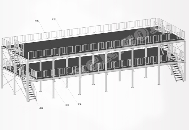 鋼結(jié)構(gòu)平臺(tái)主要由立柱、主梁、次梁、樓面板、樓梯及護(hù)欄組成。整體組裝,無(wú)須現(xiàn)場(chǎng)焊接。根據(jù)承載要求不同選擇不同的材料規(guī)格設(shè)計(jì),整體剛性強(qiáng),適用性廣。