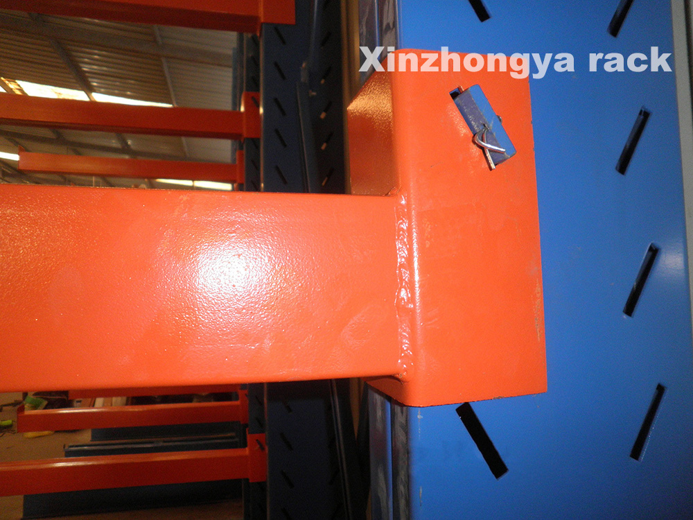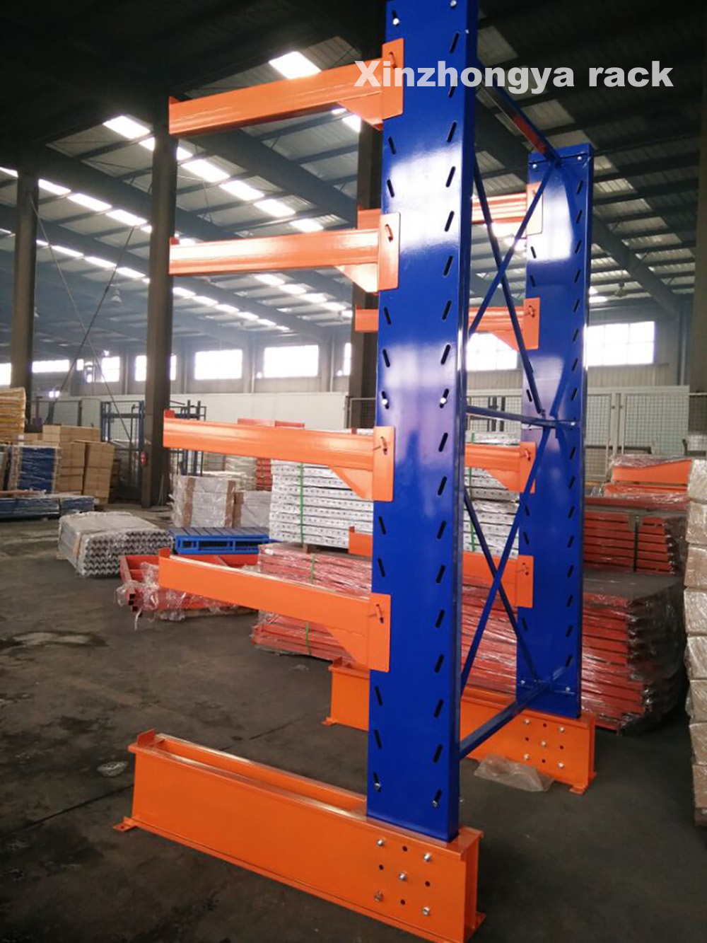 懸臂式貨架采用組合式結構,適用于存放長物料、環型物料、板材、管材及不規則貨物。根據承載能力可分為輕、中、重量型;根據結構可以是單面或雙面,懸臂式貨架具有結構穩定,載重能力好、空間利用率高等特點。懸臂式貨架立柱多采用H型鋼或冷軋型鋼,懸臂采用方管、冷軋型鋼或H型鋼,懸臂與立柱間采用插接式或螺栓連接式,底座與立柱間采用螺栓連接式,底座采用冷軋型鋼或H型鋼。貨物存取由叉車、行車或人工進行。貨架高度通常在2.5米以內(如由叉車存取貨則可高達6米),懸臂長度在1.5米以內,每臂載重通常在1000KG以內。此類貨架多用于機械制造行業和建材超市等。加了擱板后,特別適合空間小,高度低的庫房,管理方便,視野寬闊,與普通擱板式貨架相比,利用率更高;根據承載能力可分為輕量型、中量型、重量型三種。